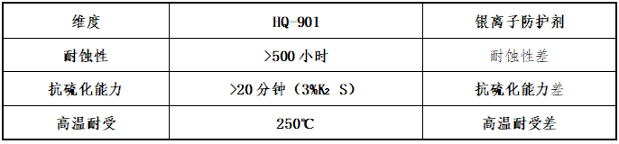 針對現有技術在防護性能、環保合規上的局限性,HQ-901 通過三位一體復合膜層技術,實現鹽霧、抗硫化、耐溫等指標超越軍標要求,其核心優勢如下: