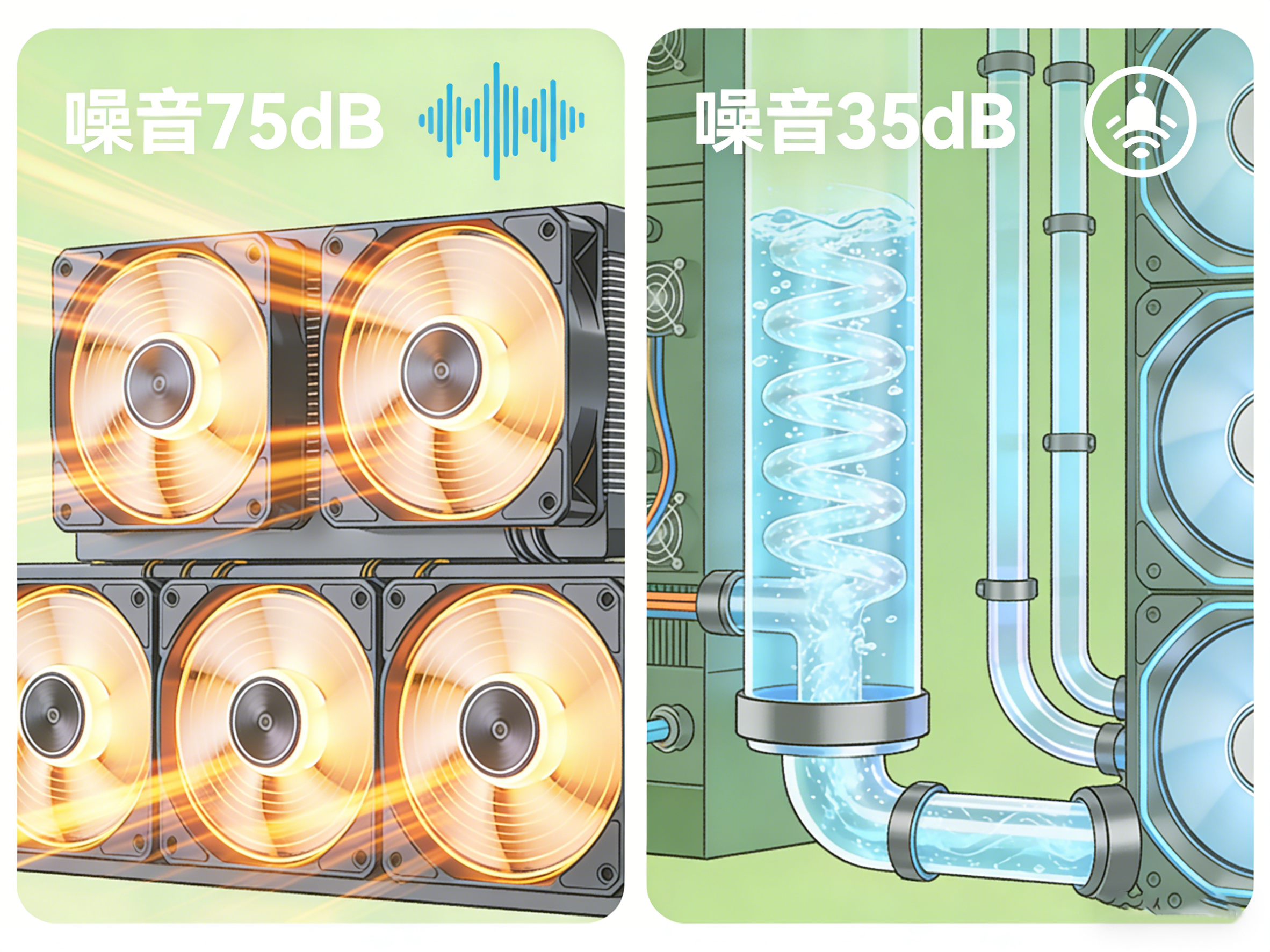 對運維人員來說,風冷機房的噪音堪稱“職業傷害”。為滿足散熱需求,風冷風扇轉速常破千轉,單臺服務器噪音就達60分貝以上,成百上千臺設備同時運轉時,噪音強度令人難以忍受。