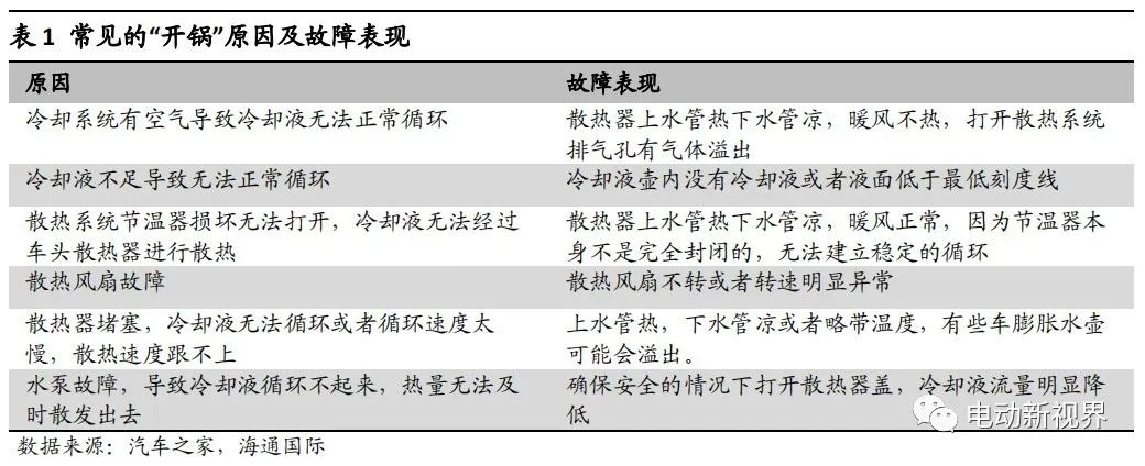 “開鍋”是指防凍冷卻液沸騰,呈現出“水被燒開”的狀態。冷卻液在正常的狀態下是不會達到沸點的,如果出現“開鍋”情況那就意味著冷卻液失效、循環冷卻系統故障等熱管理問題。