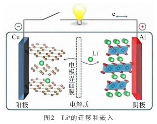 鋰離子電池最適宜的工作溫度是15~30℃,40℃以上要主動(dòng)放熱,0℃以下要加溫。從鋰電池機(jī)理上看,造成鋰離子電池低溫性能差的主要原因是隨著環(huán)境溫度的降低,電解液及電極界面膜對(duì)鋰離子轉(zhuǎn)移阻抗增大,此時(shí)Li+的遷移和負(fù)極碳隙的嵌入將變得十分困難,充放電性能因此變差(圖2),極端低溫情況甚至?xí)霈F(xiàn)電解液凍結(jié)、電池?zé)o法放電等現(xiàn)象,此類低溫容量損耗(-30℃以下)占電池總電量的19\%左右。