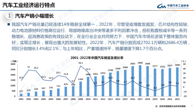 最全PPT看懂中汽協產銷數據:2022年全年銷量2686.4萬輛,增長2.1%;中汽協預計2023年小幅增長3%左右