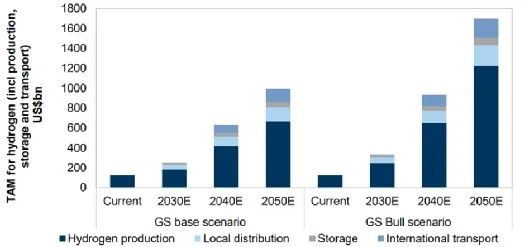 氫能生產的潛在總市場容量(TAM)可觀。