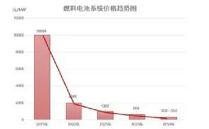 隨著規模化和技術水平的提升,燃料電池的價格快速下降。到2050年,每千瓦可能只有三百到五百元,不會高于鋰動力電池。