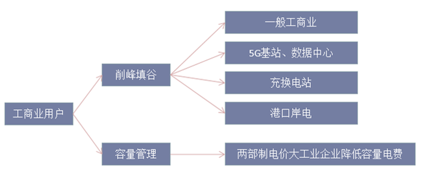 對(duì)于商業(yè)樓宇、醫(yī)院、學(xué)校等不適用于安裝大規(guī)模光伏自發(fā)電的場(chǎng)景,則通過(guò)安裝儲(chǔ)能系統(tǒng)達(dá)到削峰填谷、降低容量電價(jià)的目的。