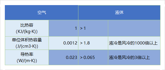 相較于風冷以空氣為冷卻媒介,通過風扇和壓縮制冷,液體的比熱容遠高于空氣,單位體積熱容量是風冷的1000倍以上,熱量傳導效率更高。