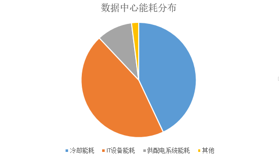 傳統高耗能風冷數據中心各部分能耗占比