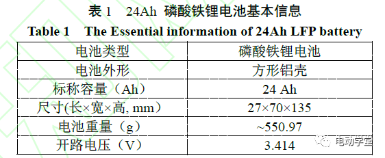 本次實驗用電池為XX儲能電站中拆卸下來的24Ah磷酸鐵鋰的電池。電池基本信息如表1所示。