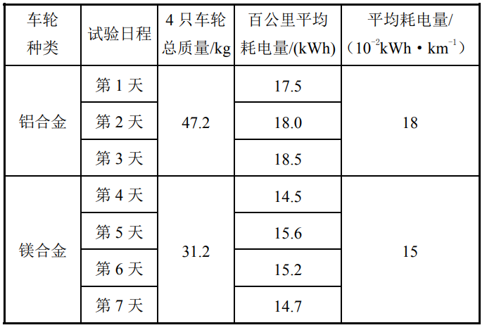 通過臺架試驗和整車路試,對比鋁合金車輪與鎂合金車輪對電動車續駛里程和整車能量消耗的影響。