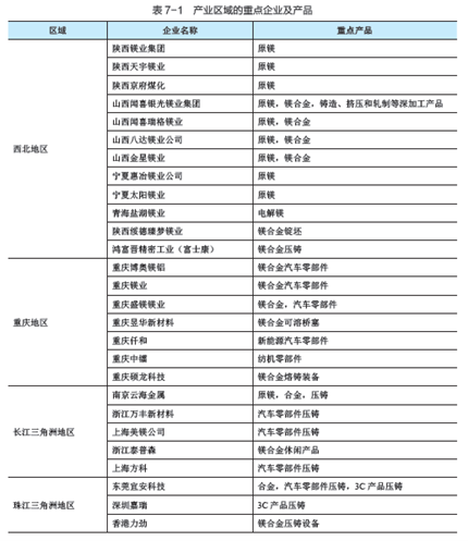 經過近幾年的穩步發展,2016年以來,我國國內的鎂消費量和鎂合金應用總量已超過國外水平。全國已形成若干區域性的鎂及鎂合金產業基地,鎂及鎂合金深加工企業超過100家。陜西、山西和寧夏等西北地區以原鎂為主,其中陜西地區原鎂產量超過50萬噸,寧夏地區原鎂產量超過18萬噸,山西地區原鎂產量超過15萬噸。山西省鎂產業正逐漸向下游深加工發展,尤其是山西的塑性變形加工具有顯著特色;青海地區以青海鹽湖鎂業為代表,以電解鎂為主;長江三角洲地區和珠江三角洲地區以鑄造加工和鎂合金裝備為主;山東和環渤海地區擁有大型加工裝備,正在發展大尺寸變形產品;河南地區主要以鎂粉和部分鑄造和變形深加工為主;重慶地區已建成了全國領先的國家鎂合金高新技術產業基地,包括鎂合金汽車產品壓鑄、變形產品和熔鑄裝備等,其中鎂合金汽車零部件產量居世界前列。
