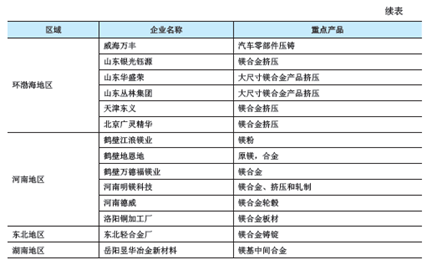華北地區、環渤海地區還有瞄準變形鎂合金市場的企業群體,重點開展變形鎂合金板材軋制、型材擠壓和鍛件加工。華北地區以山西銀光華盛鎂業、北京廣靈精華、西部鈦業、焦作高招鎂業、河南德威等為代表,主要進行鎂合金板型材和鎂輪轂等產品加工。環渤海地區的國營企業主要是東北輕合金有限公司,主要進行鎂合金型材的加工。上述兩家企業的產品主要供應給軍工應用。民營企業主要有遼寧中旺鋁業公司、山東叢林公司、山東華盛榮等。