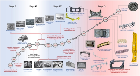 鎂合金在汽車輕量化領域的應用正在逐步增多,并且隨著新能源汽車的興起,其應用前景更加廣闊。根據"節能與新能源汽車2.0技術路線圖"的判斷,整車輕量化系數將逐步降低,這意味著汽車制造商需要尋找更輕、更強的材料來替代傳統材料。鎂合金作為一種輕質工程材料,具有低密度、高比強度和高比剛度等特點,非常適合用于汽車零部件制造。在過去的幾十年里,鎂合金的發展經歷了幾個階段。首先是20世紀30年代之前,鎂合金開始應用于制造業;然后是第二次世界大戰期間,由于軍事裝備需求,鎂合金的產量急劇增加;之后是鎂合金發展趨于平穩的時期;而近20年來,受到汽車尾氣排放、能源消耗和環保政策的影響,世界各國開始重視鎂合金的開發和研究。
