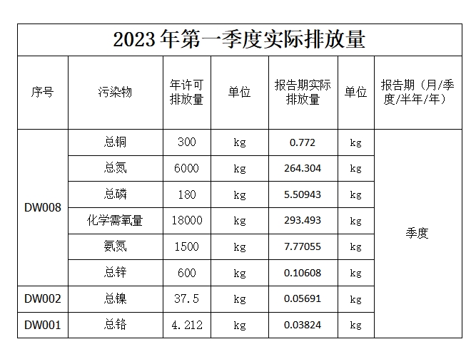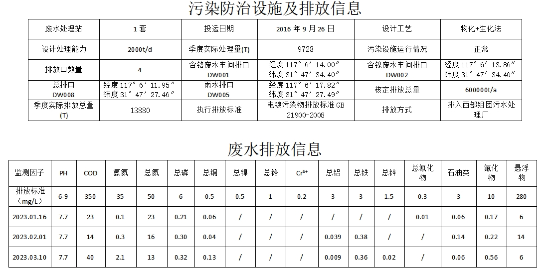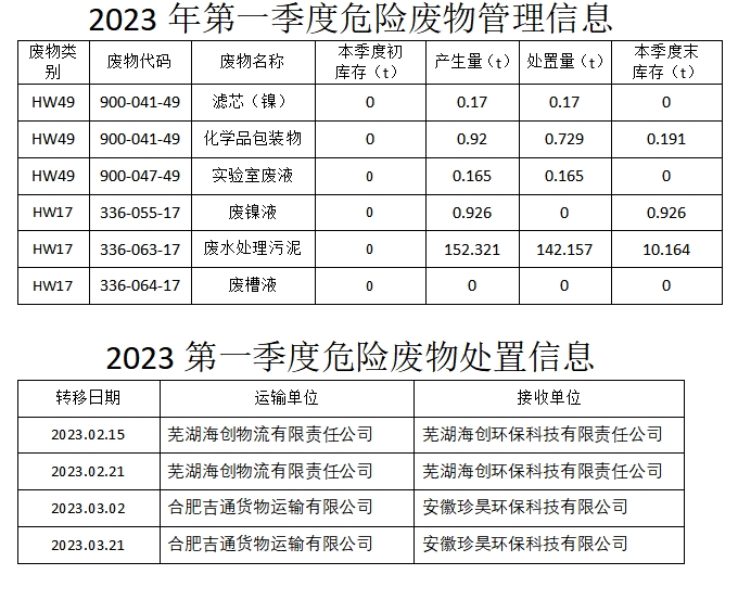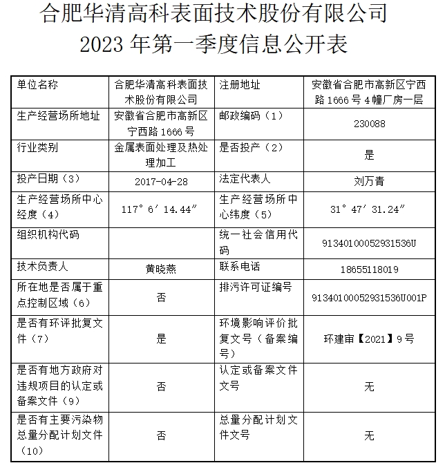 合肥華清海陽表面處理科技有限公司2023年第一季度信息公開表