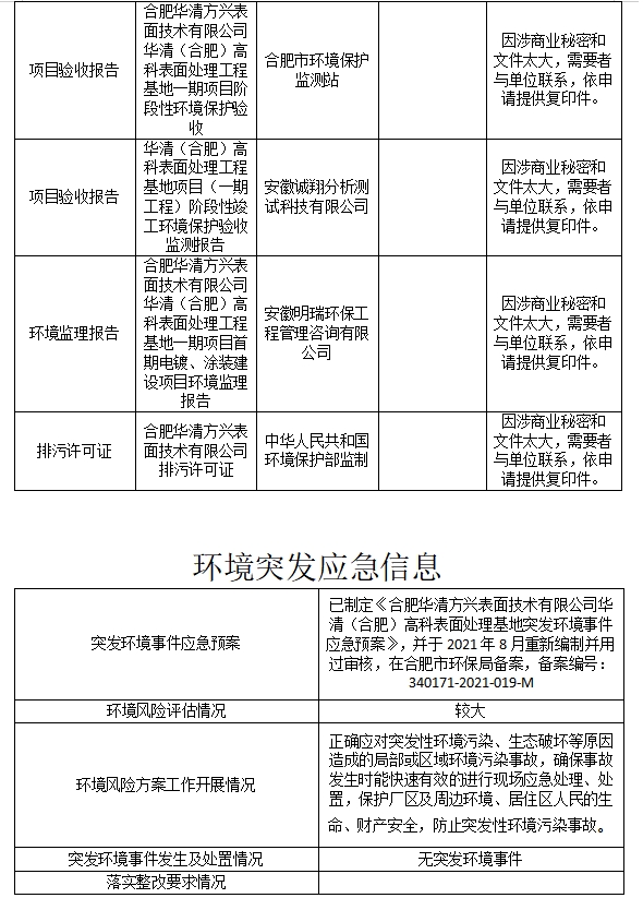合肥華清高科表面技術股份有限公司 2022年第四季度信息公開表