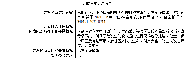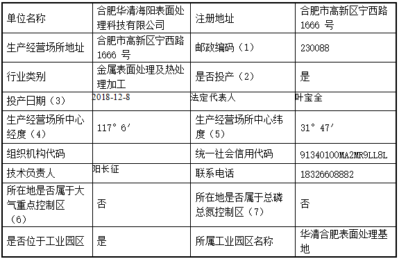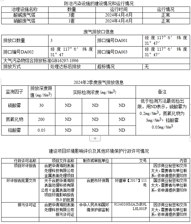 合肥華清海陽表面處理科技有限公司2024年第2季度信息公開表