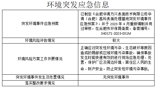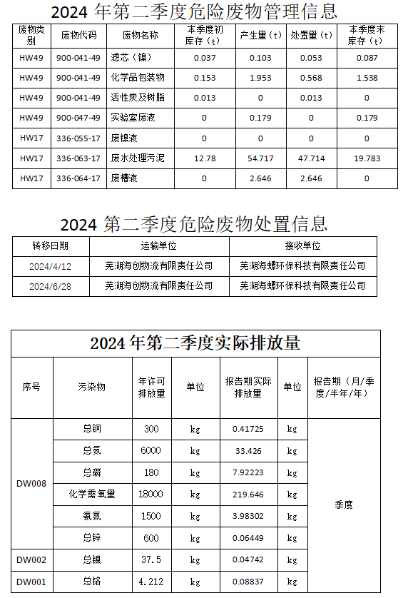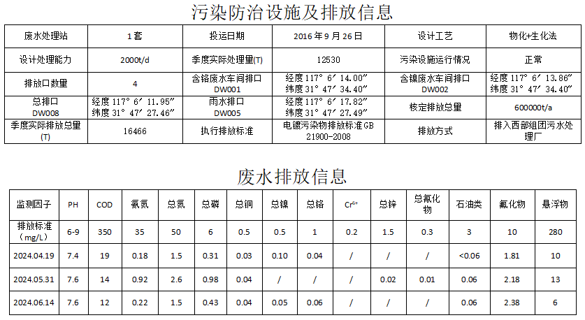 合肥華清海陽表面處理科技有限公司2024年第2季度信息公開表