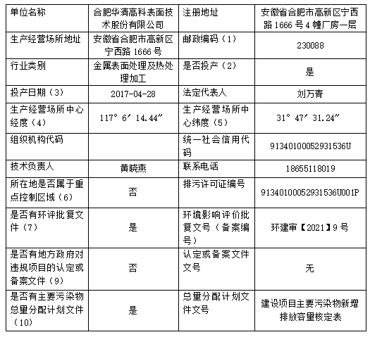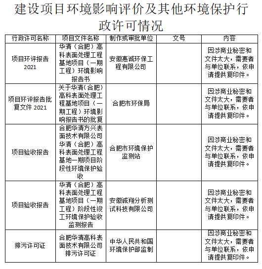 合肥華清高科表面技術股份有限公司 2024年第二季度信息公開表