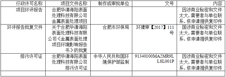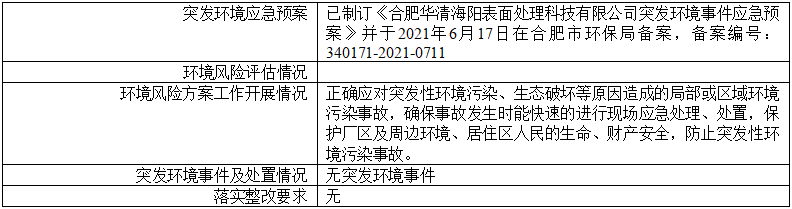合肥華清海陽(yáng)表面處理科技有限公司2024年第3季度信息公開(kāi)表