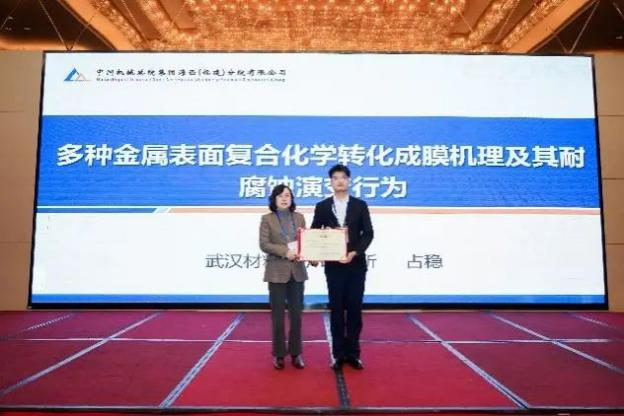 中國機械總院集團武漢材料保護研究所有限公司王文豪工程師作了題為《多種金屬表面復合化學轉化成膜機理及其耐腐蝕演變行為》的報告