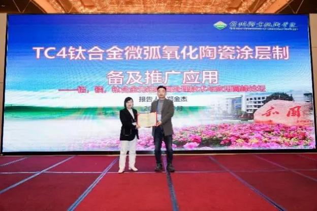 臺州職業技術學院鄭金杰副教授作了題為《TC4 鈦合金微弧氧化陶瓷涂層制備及推廣應用》的報告