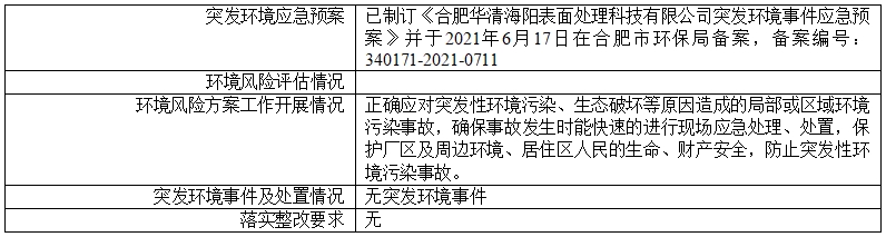合肥華清海陽表面處理科技有限公司2024年第4季度信息公開表