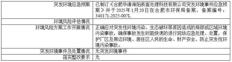 合肥華清海陽(yáng)表面處理科技有限公司2025年第1季度信息公開(kāi)表