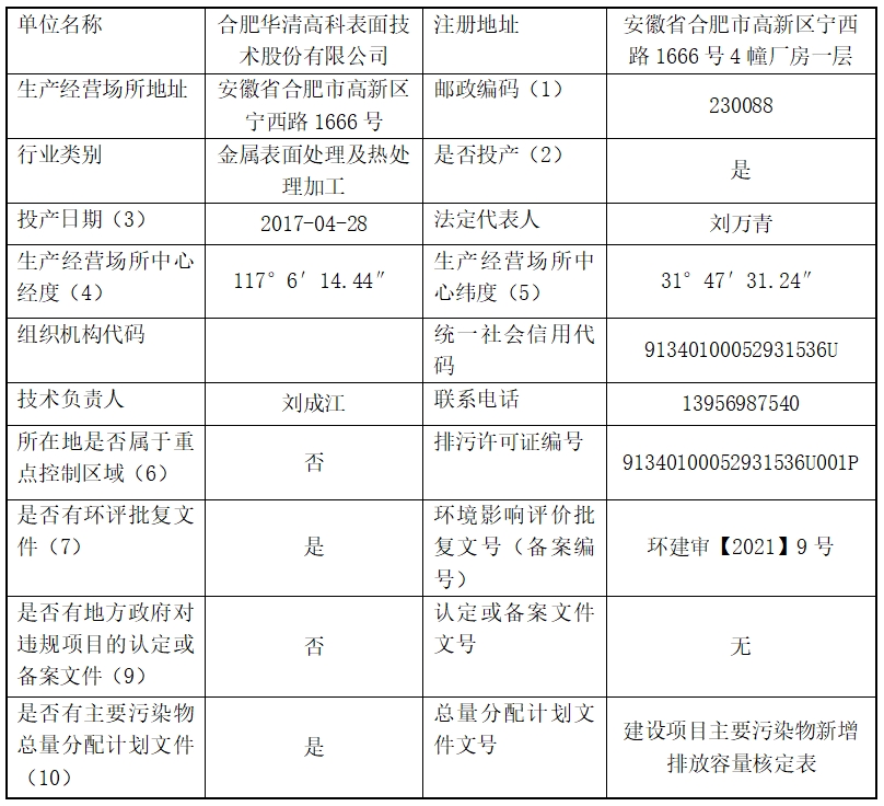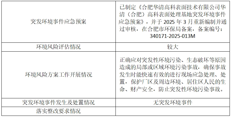 合肥華清高科表面技術股份有限公司 2025年第二季度信息公開表