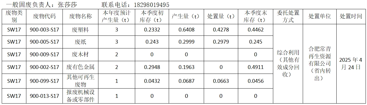 2025年第二季度危險廢物管理信息