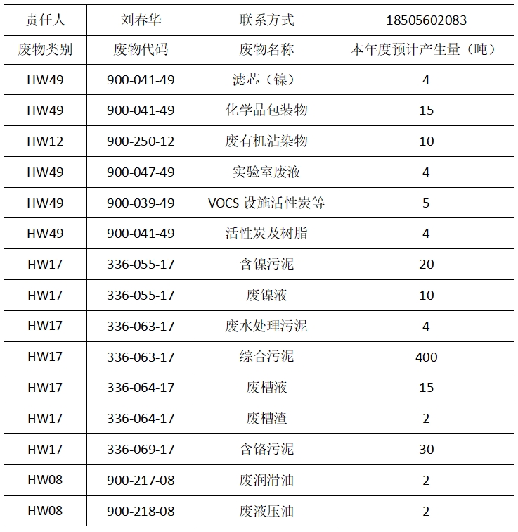 2025年度危險廢物預計產生量信息