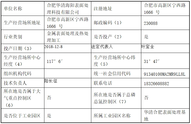 合肥華清海陽表面處理科技有限公司2025年第2季度信息公開表